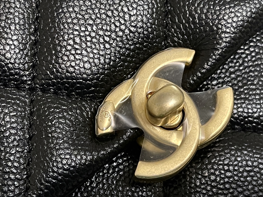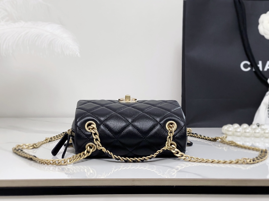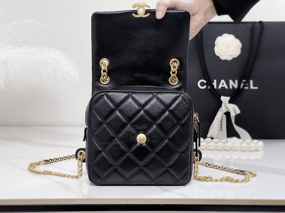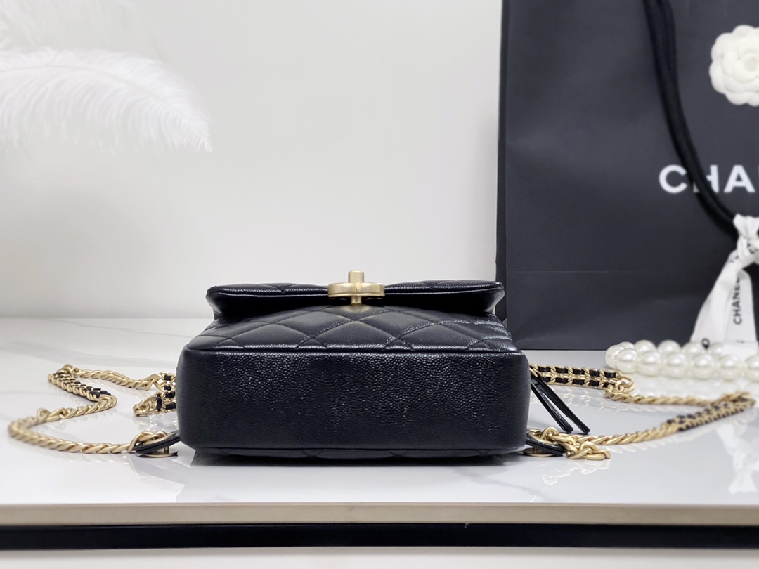 Chanel 22P Black Gold Mini Backpack Quilted Flap Bag, 20 x 19 x 8 cm